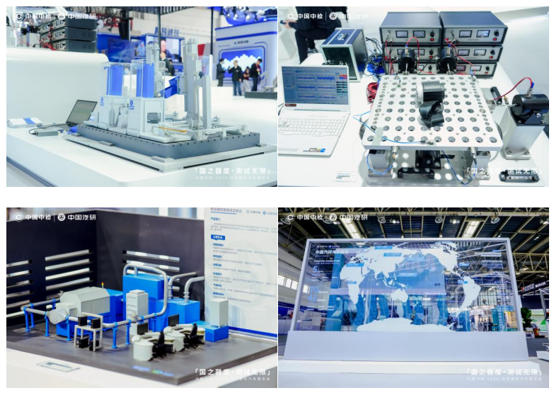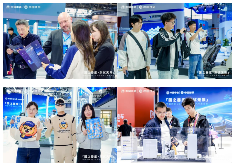 零部件事业部展出智能底盘异响测试诊断工具链,实现数据采集、测试、分析、诊断闭环;装备事业部展示制动器排放试验台、六自由度振动平台及氢能核心零部件,凸显高端装备自主创新实力;能源动力事业部聚焦新能源与低碳,提供动力测试、能耗测评及低碳合规全链条支持;海外事业部以世界沙盘与展板呈现五大海外中心布局及全球合规服务能力。品牌宣传中心依托国家级科研院所的权威背书,展现2026 极热夏测、母婴级健康汽车评价体系等IP,将硬核技术转化为品牌信任价值。